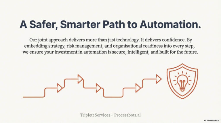 At Triplett Services, in partnership with Processbots.ai, we help enterprises avoid this pitfall by applying a structured, data-driven methodology that clarifies where automation makes sense, what level of automation is prudent, and how to build trust in the process before handing work to a machine.