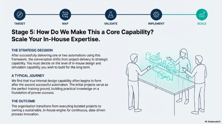 - Decide on the level of in-house capability you wish to build, with the expectation that internal design capability often begins after the second automation.